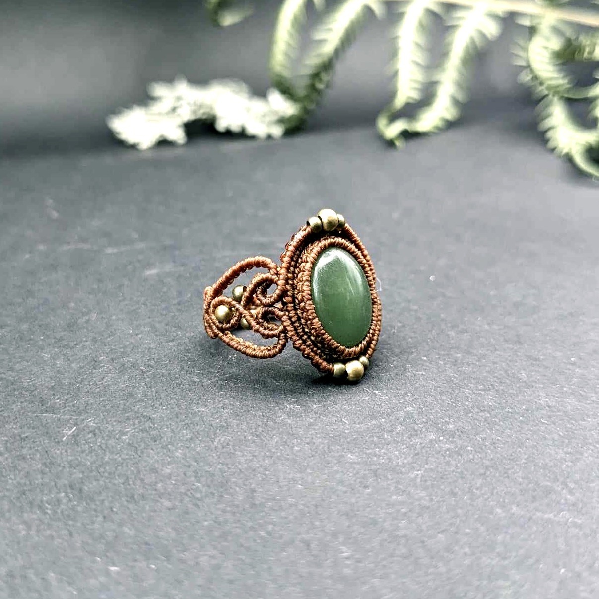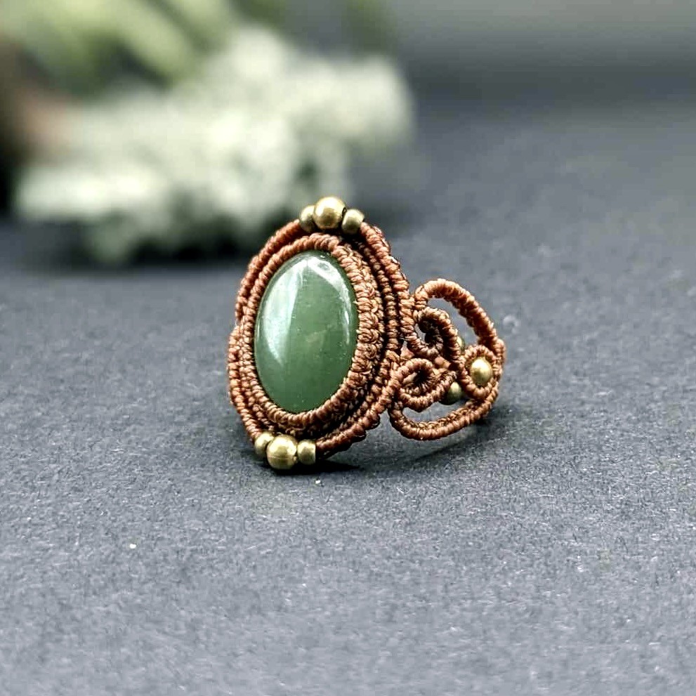 Bague en micro-macramé orné d'une aventurine.